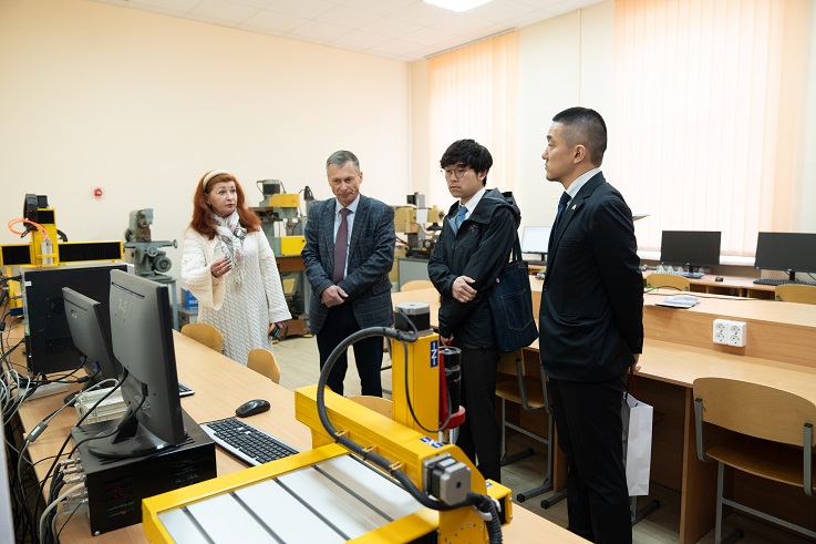 Гості ознайомилися з науково-освітньою інфраструктурою університету та відвідали науково-дослідну лабораторію електронної мікроскопії, а також навчальні лабораторії робототехніки, автоматизації технологічних процесів та верстатів з числовим програмним керуванням.