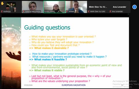 З 18 по 22 березня в межах діяльності Альянсу європейських університетів «PIONEER Alliance», асоційованим партнером якого є Тернопільський національний технічний університет імені Івана Пулюя (координатор — д.т.н., проф. Тетяна ВІТЕНЬКО), професор кафедри економіки та фінансів Наталія МАРИНЕНКО взяла участь у 5-му Європейському Хакатоні у ролі ментора та тренера.